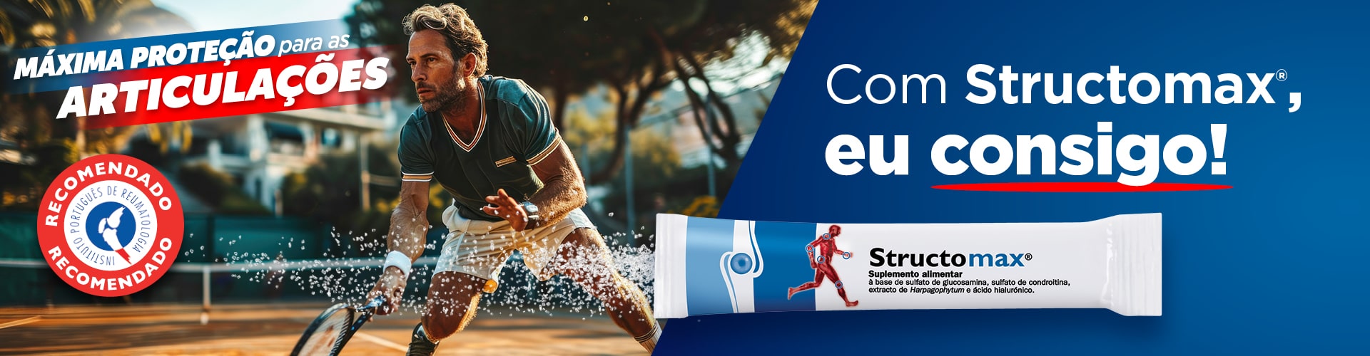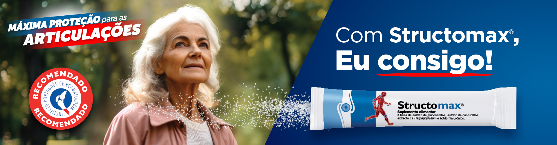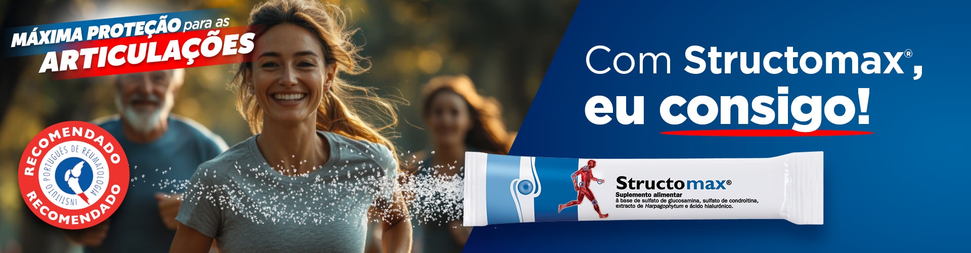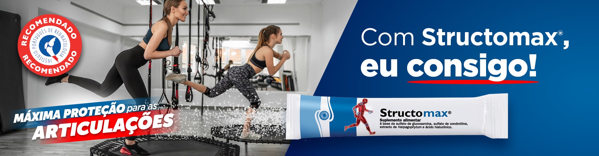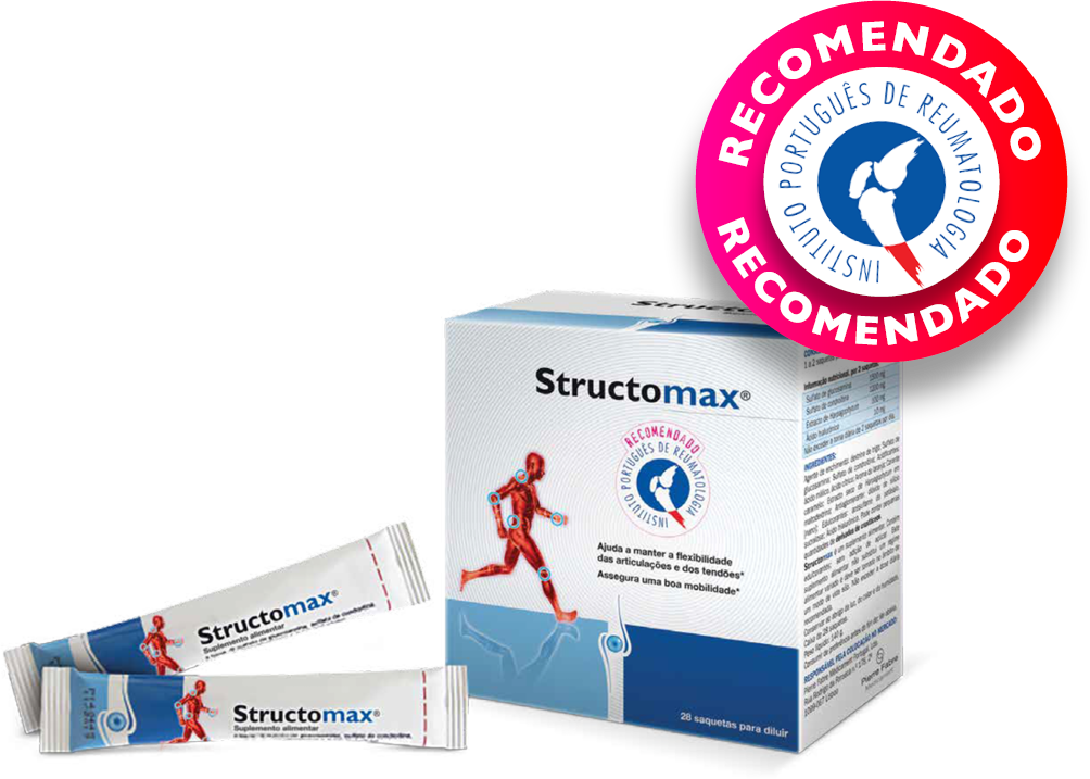 Structomax é um suplemento alimentar à base de sulfato de glucosamina, sulfato de condroitina, extracto de Harpagophytum e ácido hialurónico.